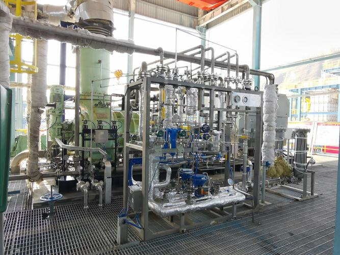 預熱到600-650℃的原料天然氣和氧進入多管式燒嘴板乙炔爐,在1500℃下,甲烷裂解制得8%左右的稀乙炔,再用N-甲基吡咯烷酮提濃制得99%的乙炔成品。